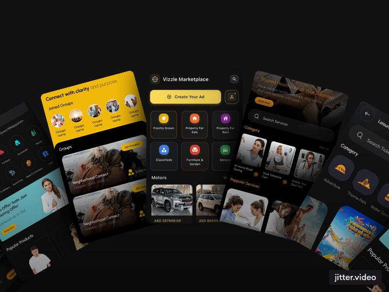 Livera Commerce (shopping), Livera Care (health), V-Job (careers), Vizzle (classifieds), Leisure (entertainment), and community tools — all in one ecosystem.